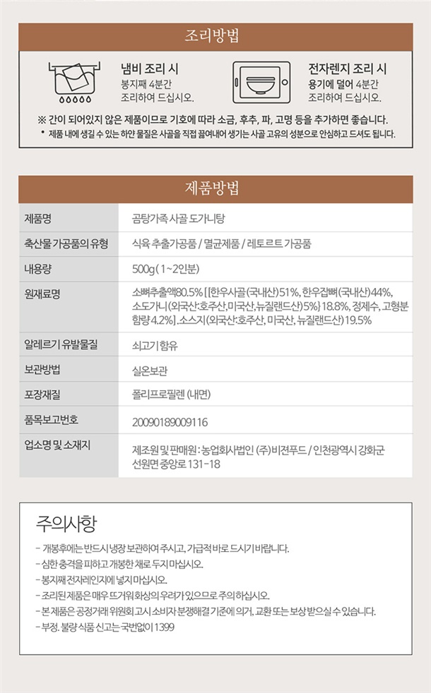 곰탕가족 한우사골 도가니탕