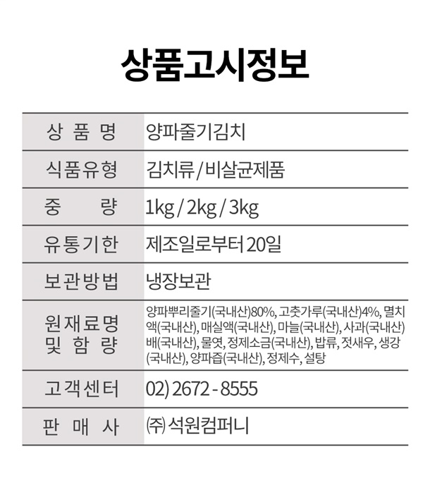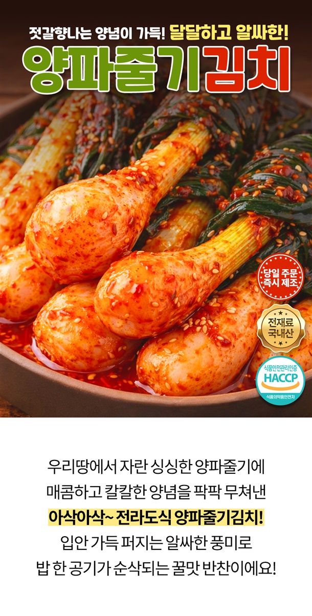 전재료 국내산! 양파줄기김치