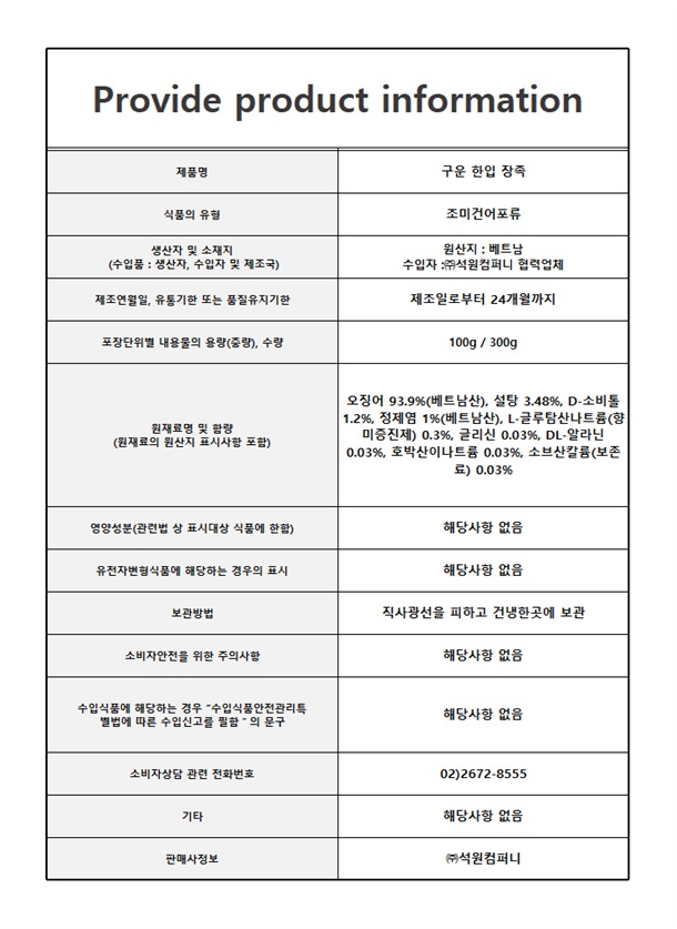 숏다리 :제조일로부터 2년 / 기타 건어물 : 상품 상세참조