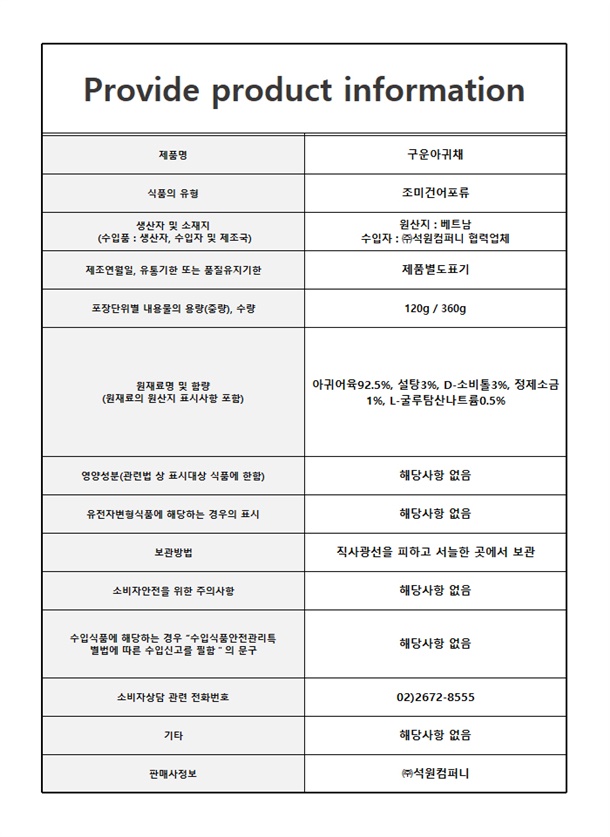 숏다리 : 베트남 / 기타 건어물 : 상품 상세참조